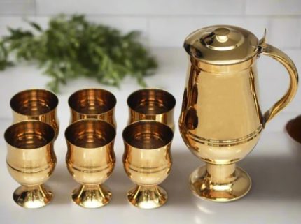 SS Golden 6 Glass & 1 Jug Set – Stainless Steel Gold PVD Coated